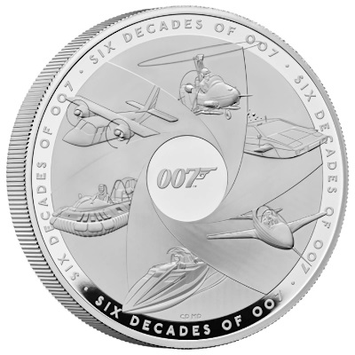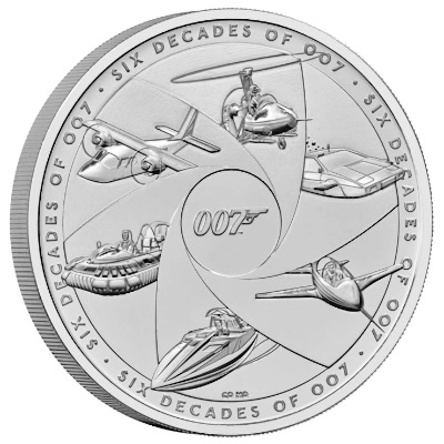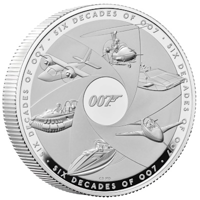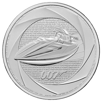 Dies ist die vierte Ausgabe einer Serie der Royal Mint, die das bleibende Vermächtnis von James Bond feiert, Six Decades of 007. Diese Münzenserie zeigt jeweils eine ikonische Szene von Bond Filmen, die aus jedem Jahrzehnt ausgewählt wurde. Das vierte Design zeigt das Schnellboot von Q Branch aus der Themse-Szene in Die Welt ist nicht genug aus dem Jahr 1999. |