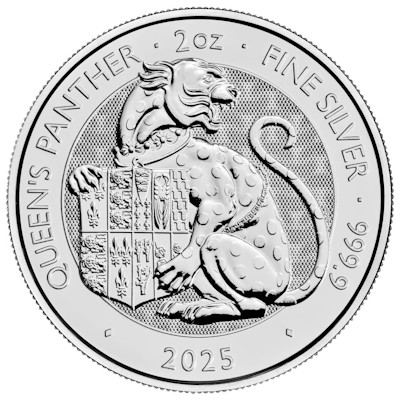 Großbritannien - 4 GBP Tudor Beasts (7.) The Queens Panther 2025 - 2*1 Oz Silber Proof & Reverse Frosted Proof | ||