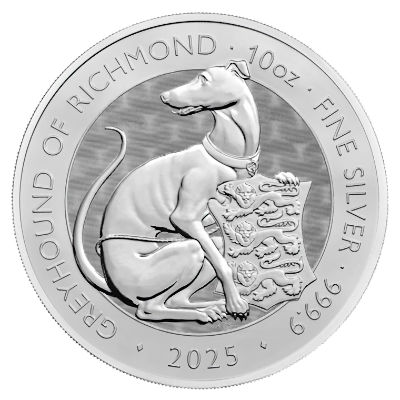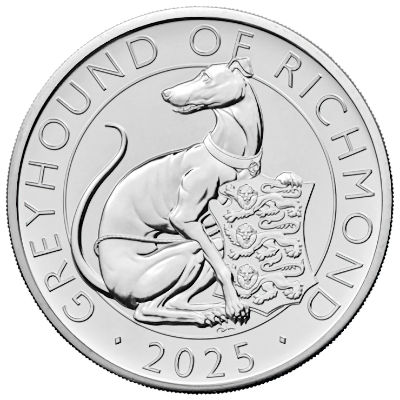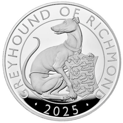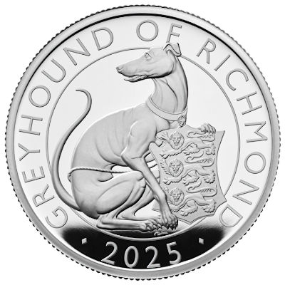 Großbritannien - 4 GBP Tudor Beasts (8.) The Greyhound of Richmond 2025 - 2*1 Oz Silber Proof & Reverse Frosted Proof | ||