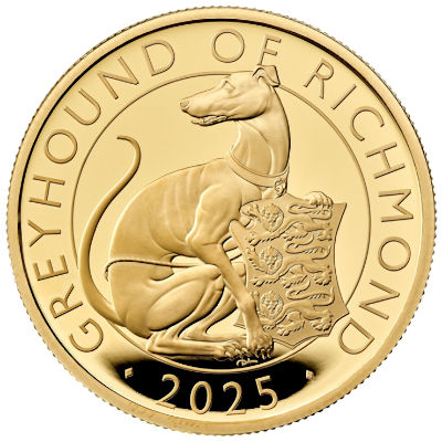 Großbritannien - 100 GBP Tudor Beasts (8.) The Greyhound of Richmond 2025 - 1 Oz Gold PP | ||