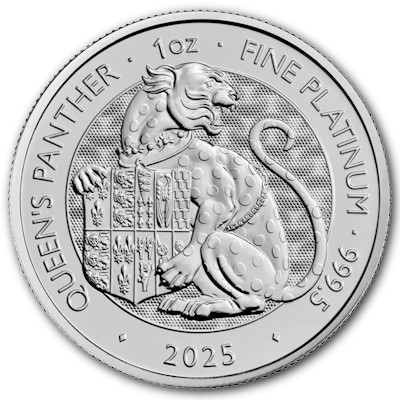 Es handelt sich hier um die 8. Ausgabe der Serie Tudor Beasts mit dem Motiv Queen`s Lion. Die Münze besteht aus 1 Oz Platin in Stempelglanz. |