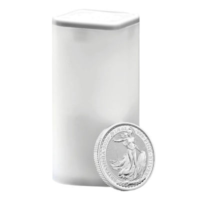Es handelt sich hier um die Britannia von 2025 in der Größe von 1/10 Oz Feinsilber. Sie kaufen eine gesamte Tube mit 16 Münzen und einem Gesamgewicht von knapp 50 Gramm Feinsilber. |